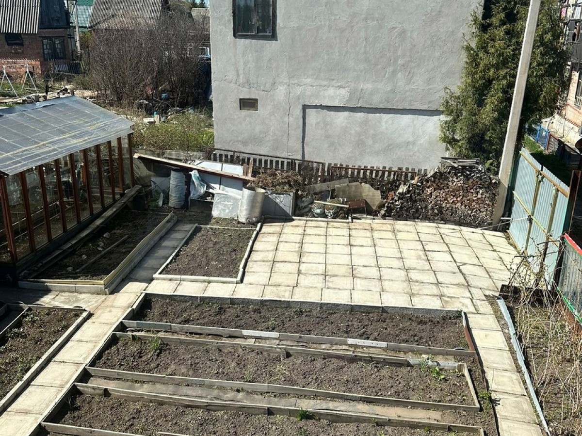 На участке расположены 2 теплицы. 2 грядки с клубникой, а так же есть яблоня, смородина, крыжовник, жимолость, вишня.
